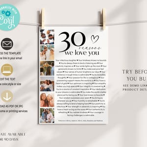 30 Reasons We Love You Poster With Pictures Template Printable 30th