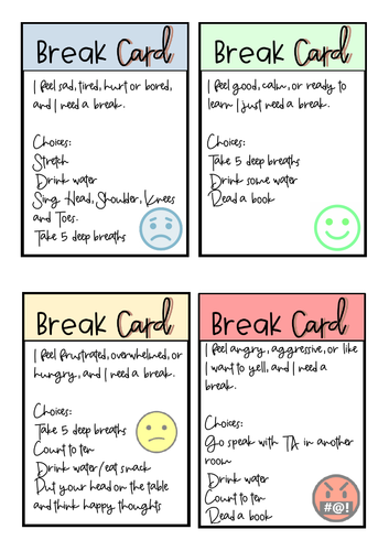 quot I Need a Break quot Cards by Jessica Millar Teachers Pay Teachers