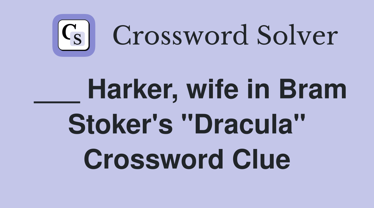 Harker wife in Bram Stoker #39 s quot Dracula quot Crossword Clue Answers