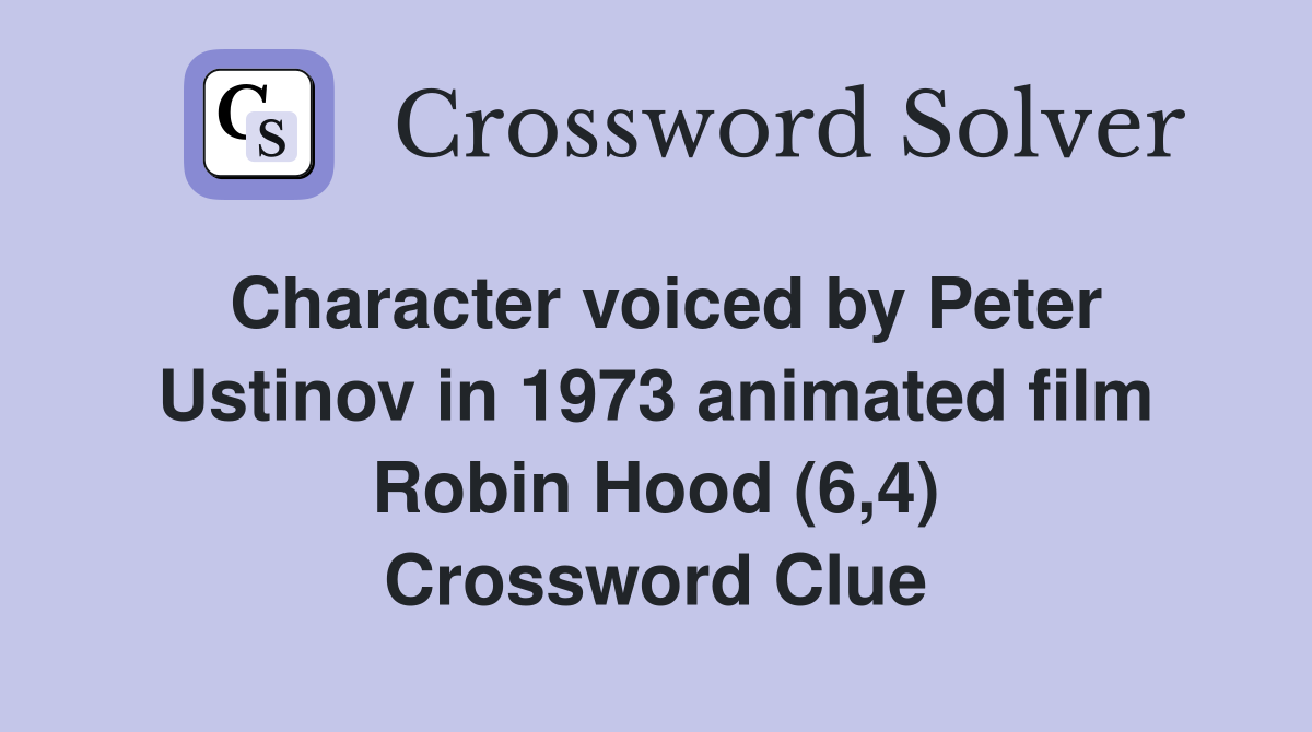 Character voiced by Peter Ustinov in 1973 animated film Robin Hood (6 4