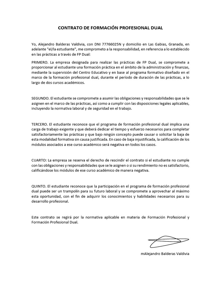 Contrato de Formación Profesional Dual PDF