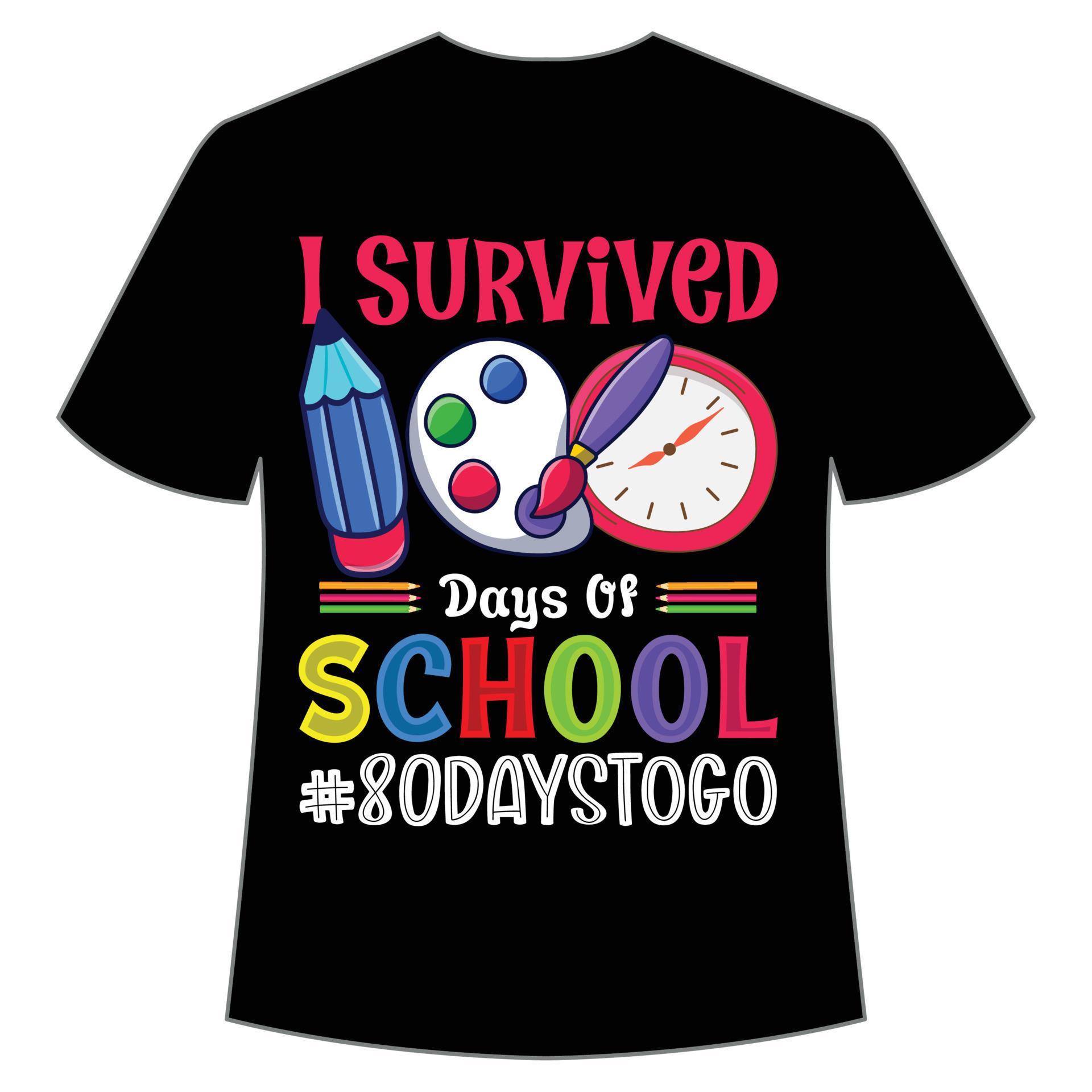 I survived 100 days of school 80 days to go t shirt Happy back to