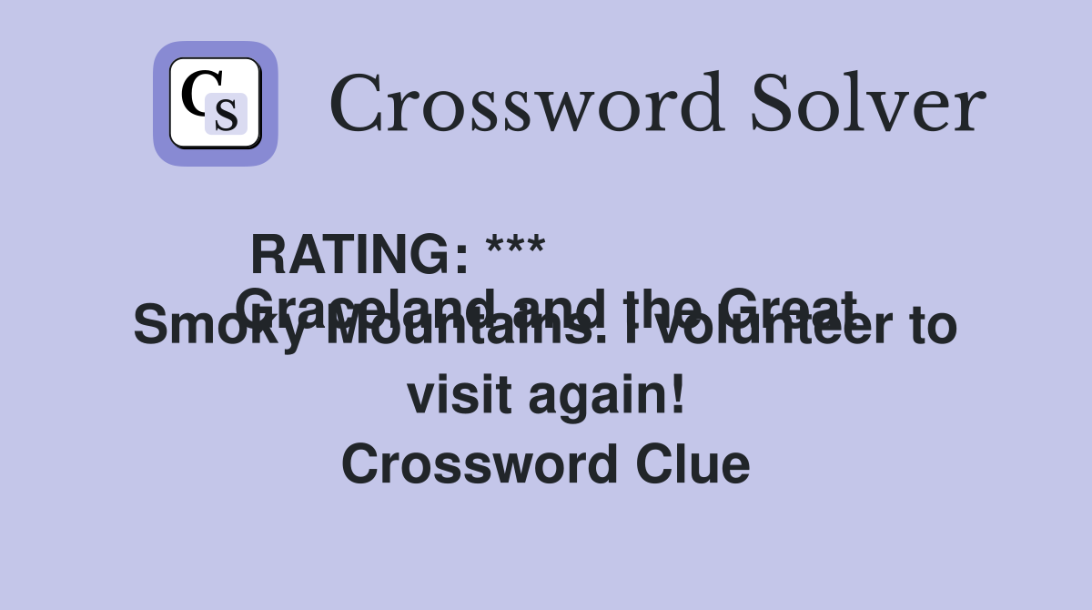 RATING: *** Graceland and the Great Smoky Mountains I volunteer to