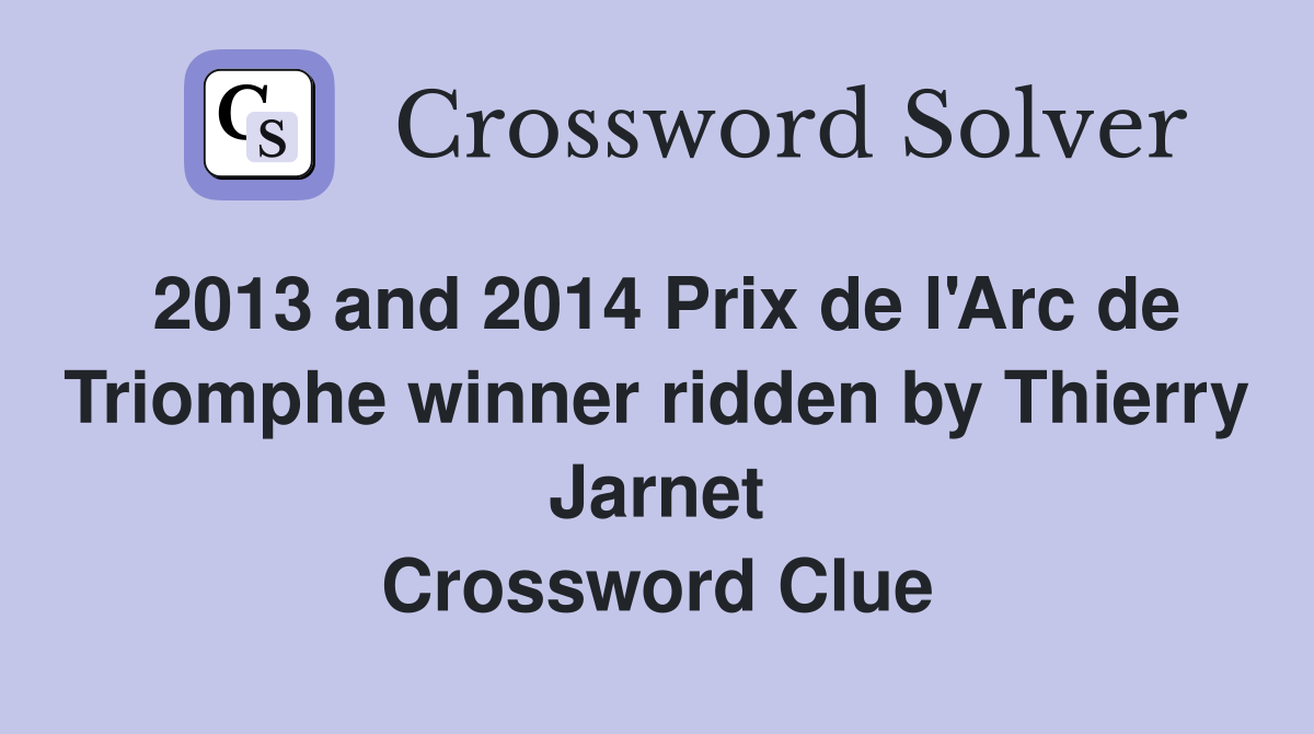2013 and 2014 Prix de l #39 Arc de Triomphe winner ridden by Thierry Jarnet