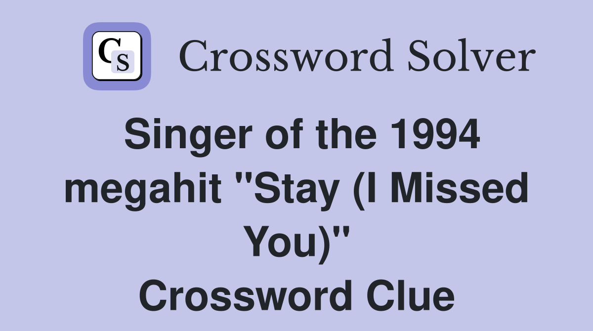 Singer of the 1994 megahit quot Stay (I Missed You) quot Crossword Clue