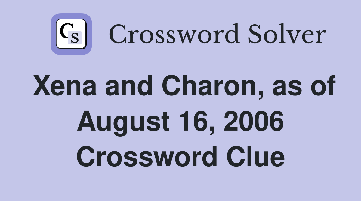 Xena and Charon as of August 16 2006 Crossword Clue Answers
