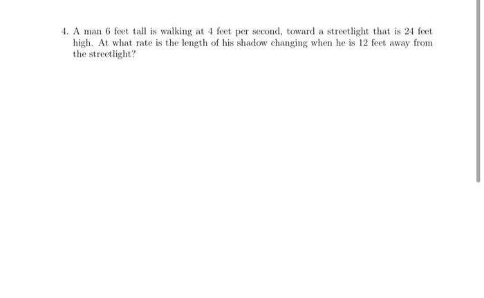 Solved 4 A man 6 feet tall is walking at 4 feet per second Chegg com