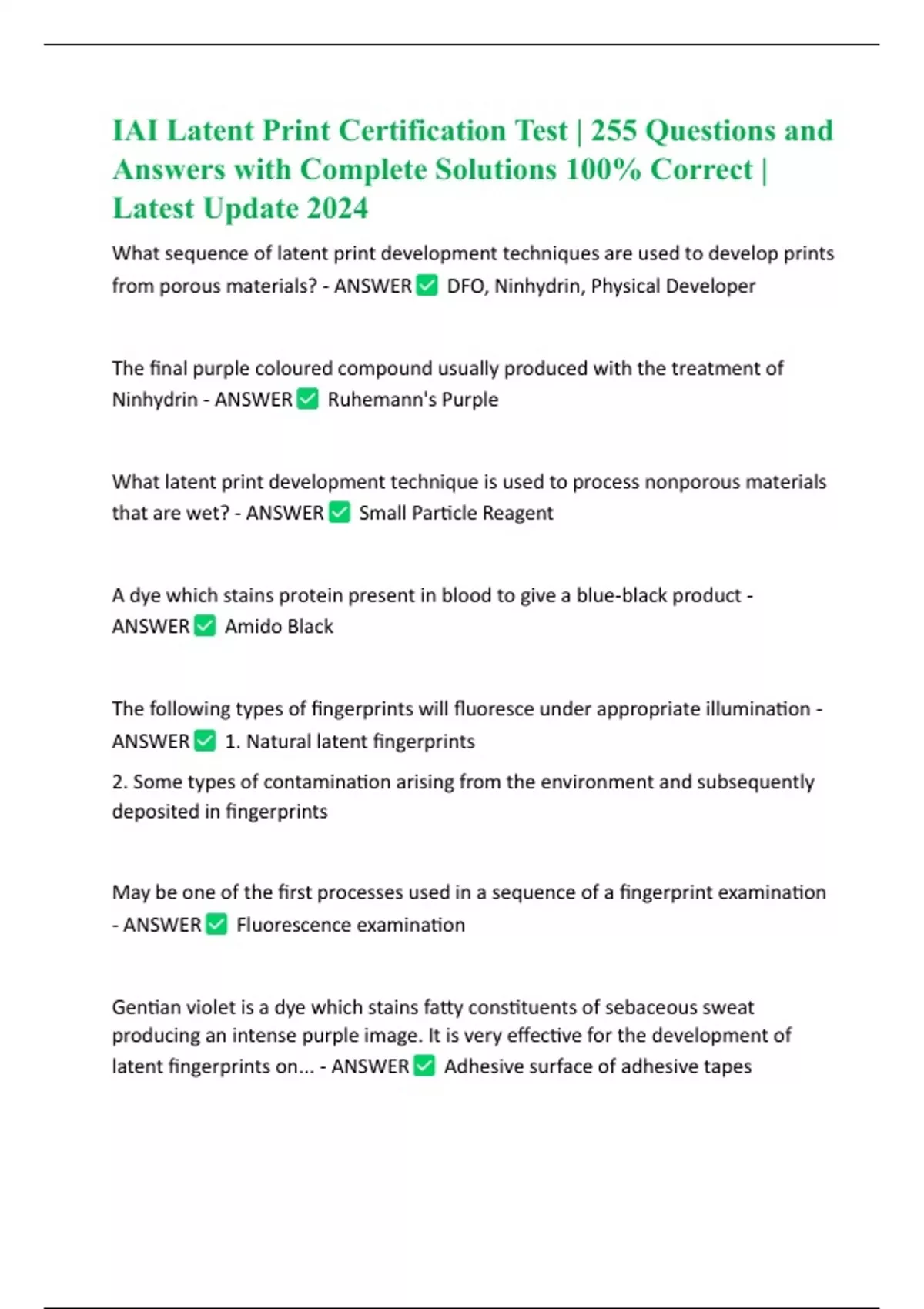 THE IAI LATENT PRINT CERTIFICATION EXAM 2024 QUESTIONS AND ANSWERS