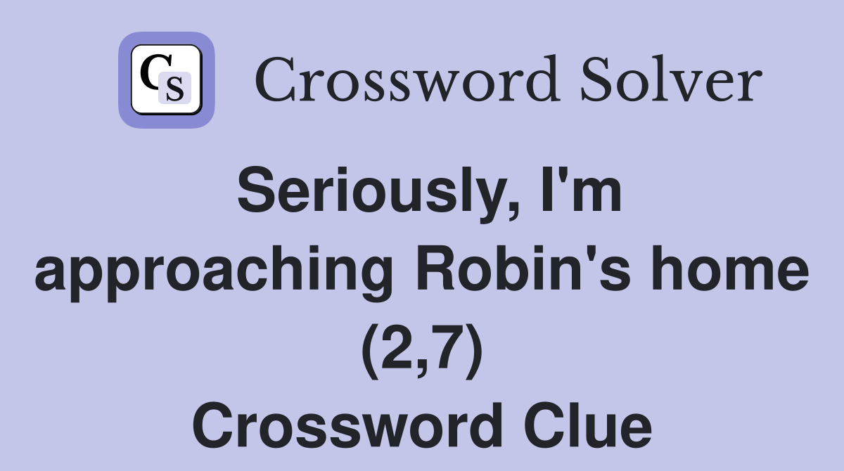 Seriously I #39 m approaching Robin #39 s home (2 7) Crossword Clue Answers