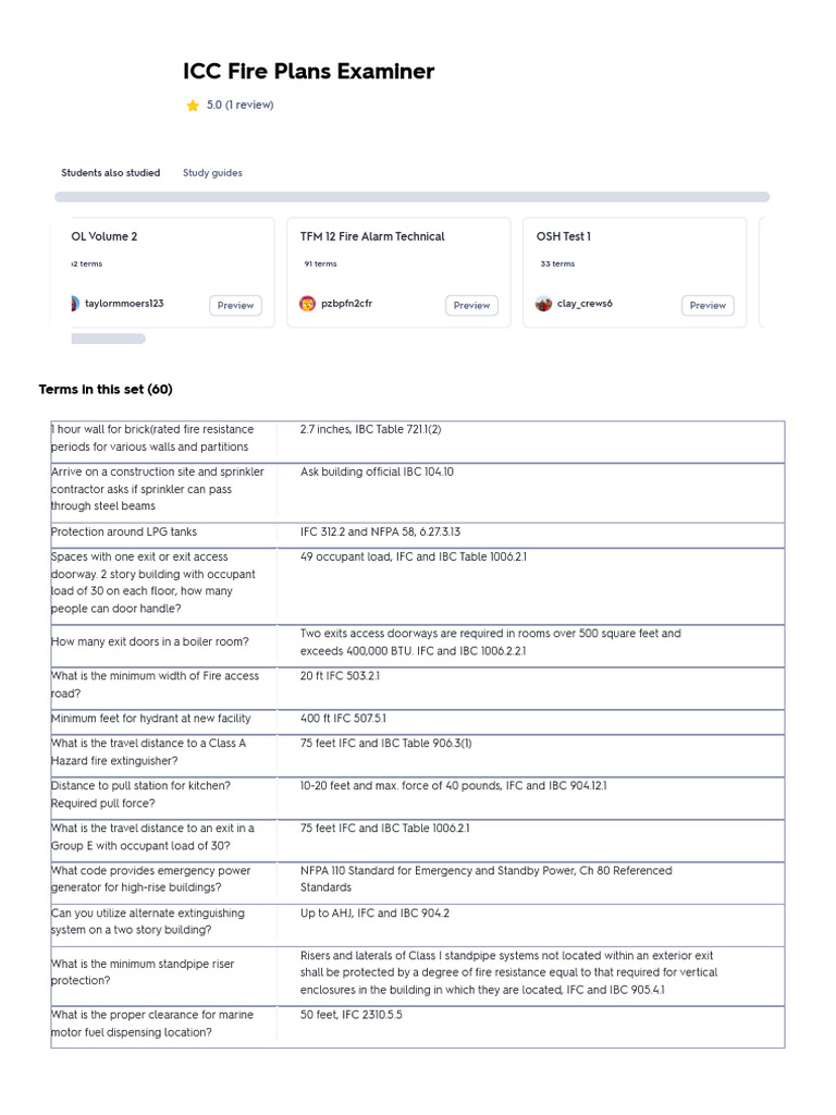 ICC Fire Plans Examiner Flashcards Quizlet PDF Building Engineering