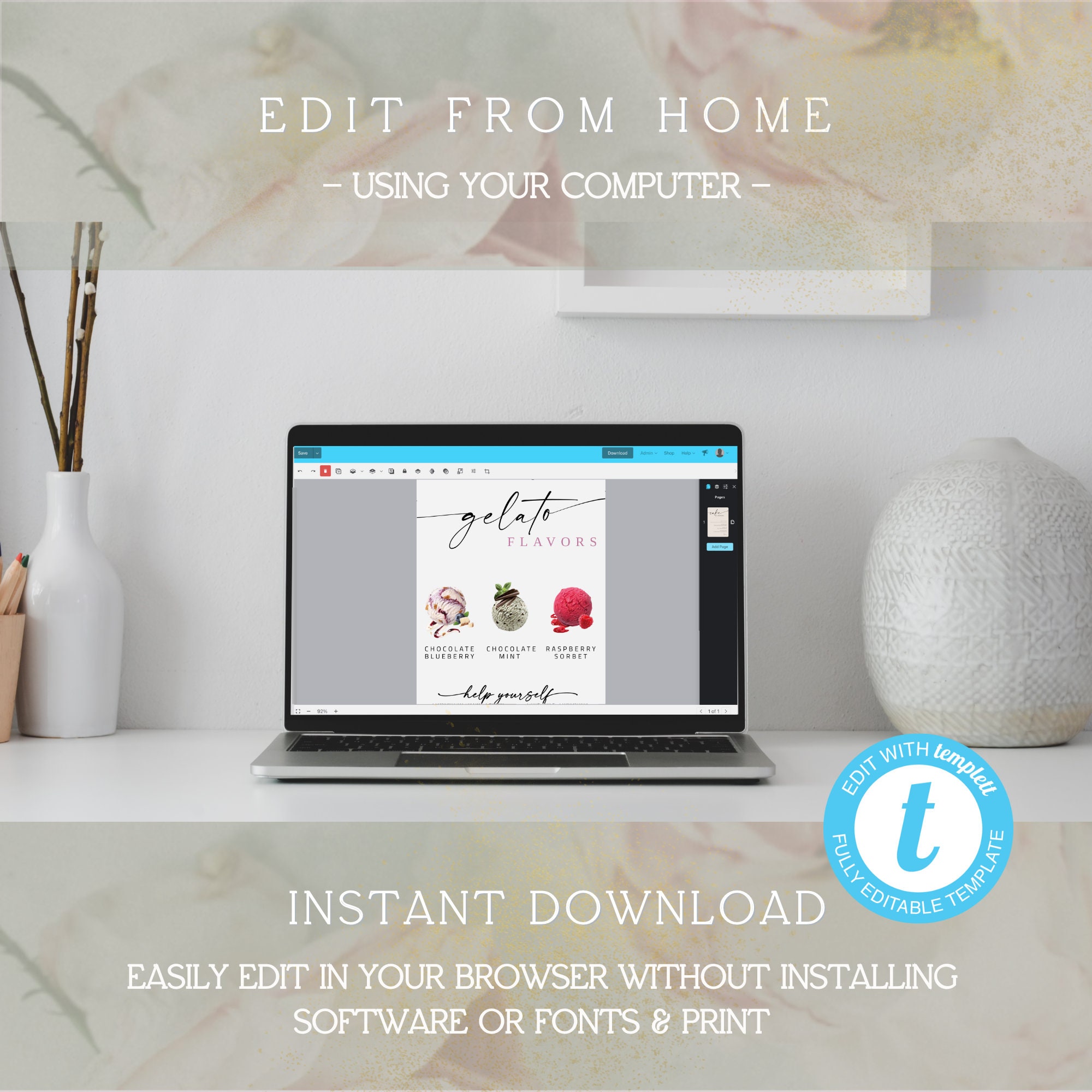 Ice Cream Bar Sign Template Gelato Station Printable Modern Wedding