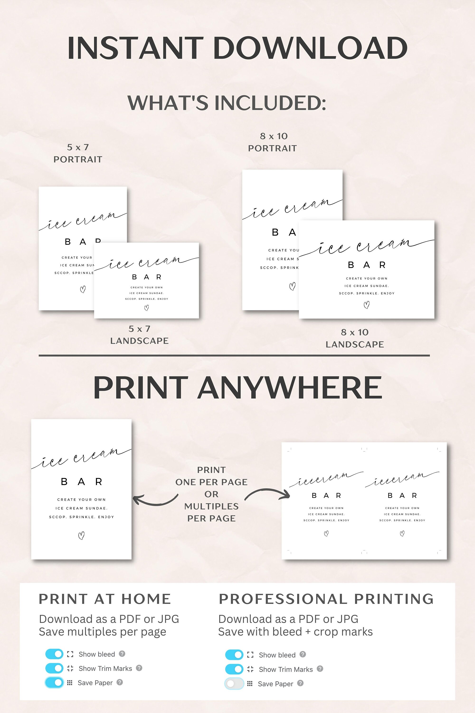 Ice Cream Bar Sign Template INSTANT DOWNLOAD Sundae Bar Sign Minimalist