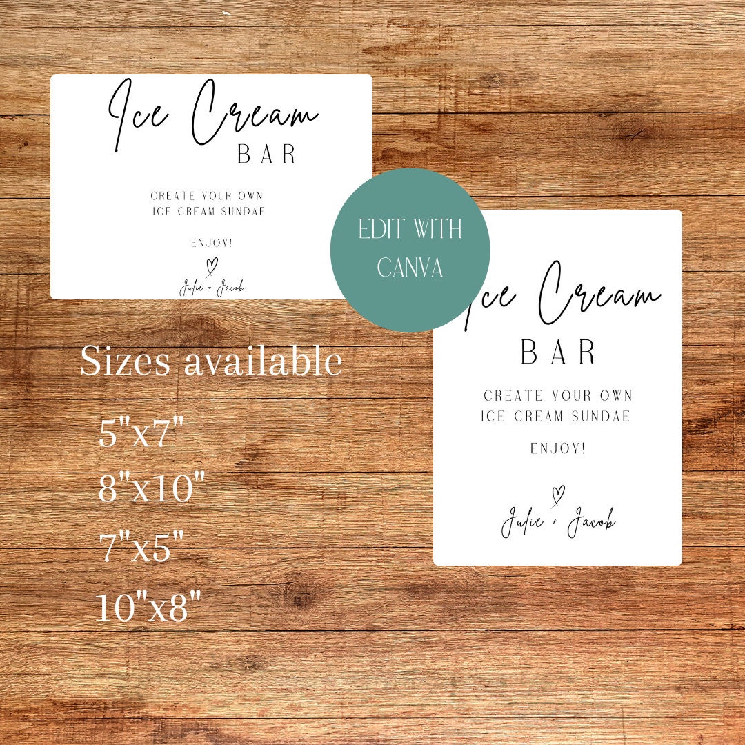 Ice Cream Bar Sign Template Sundae Bar Table Sign Minimalist Ice