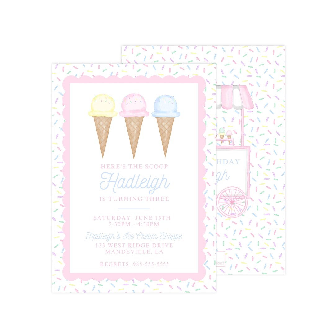 Ice Cream Invitation Template Etsy