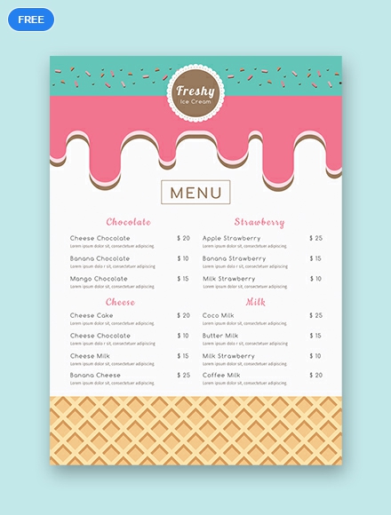 Free Ice Cream Menu Template in Microsoft Word Microsoft Publisher
