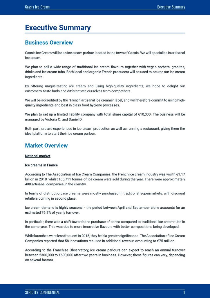 Ice cream parlour business plan template