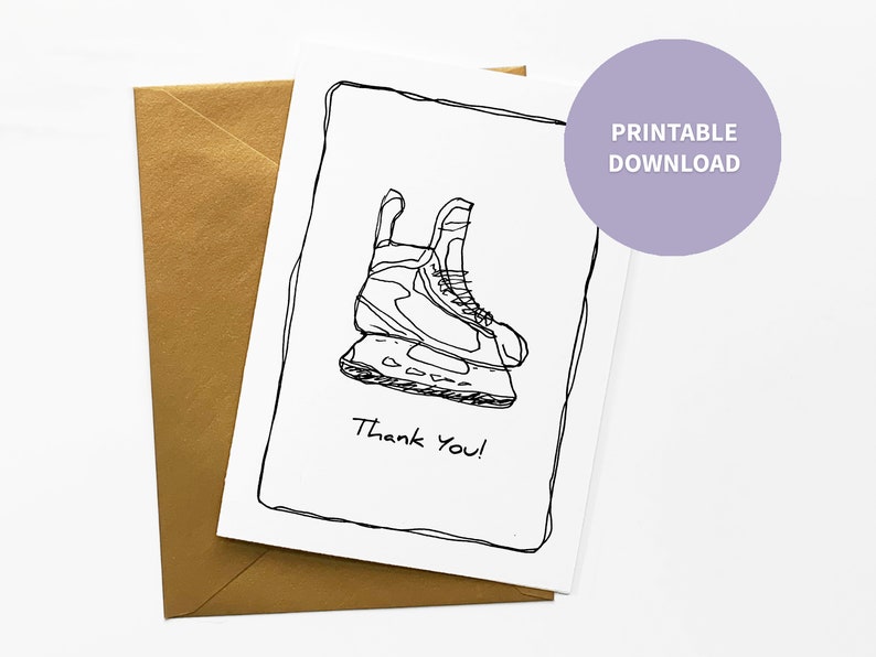 Ice Skate Printable Thank You Card Sports Illustration Kids Hockey