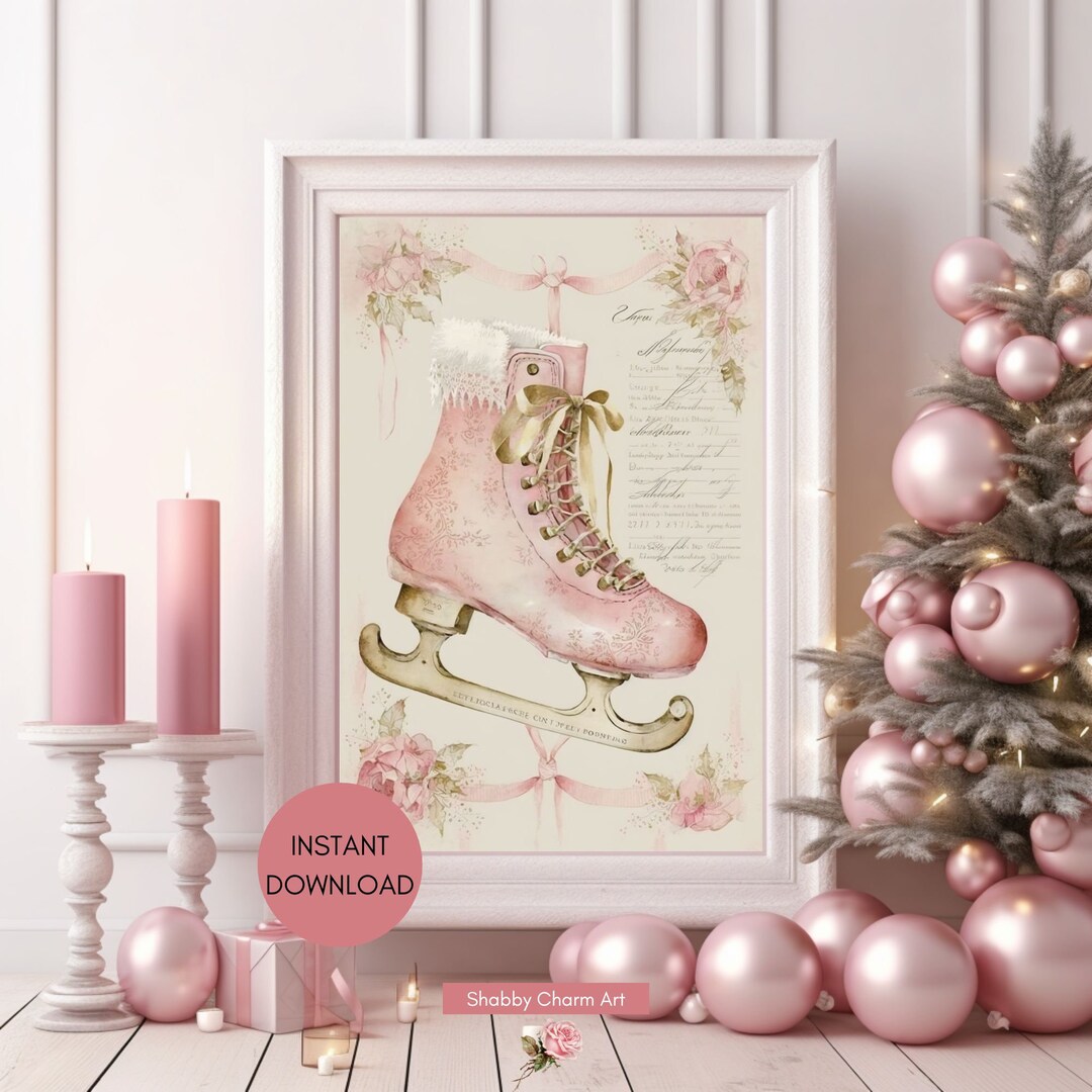 Ice Skate Printable 8x10 Christmas Print Shabby Christmas Vintage Print