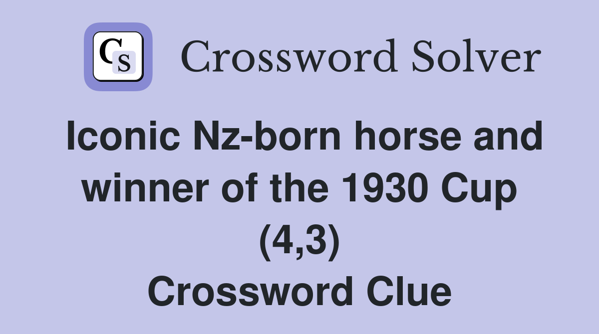 Iconic Nz born horse and winner of the 1930 Cup (4 3) Crossword Clue