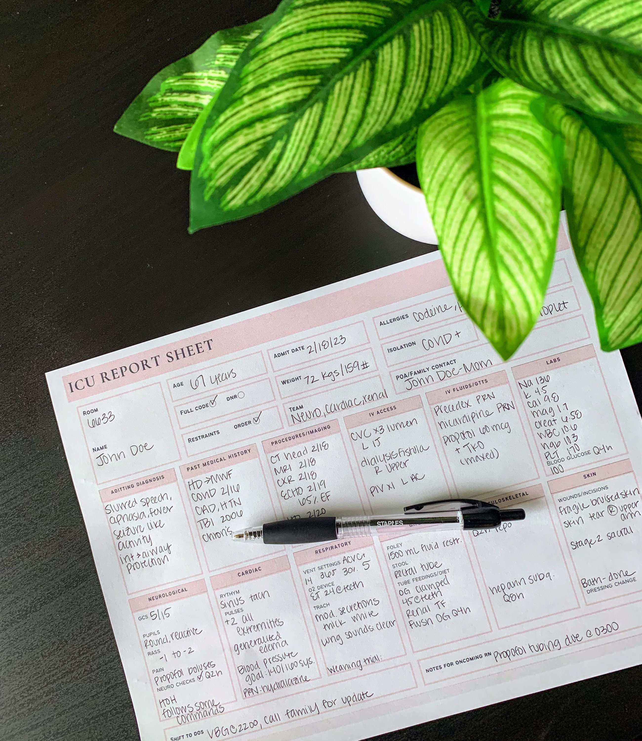 ICU Nurse Report Sheet Printable ICU Nurse Organization Nurse Brain