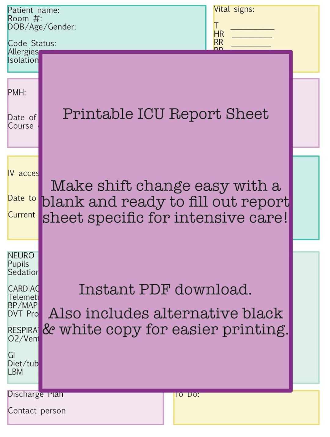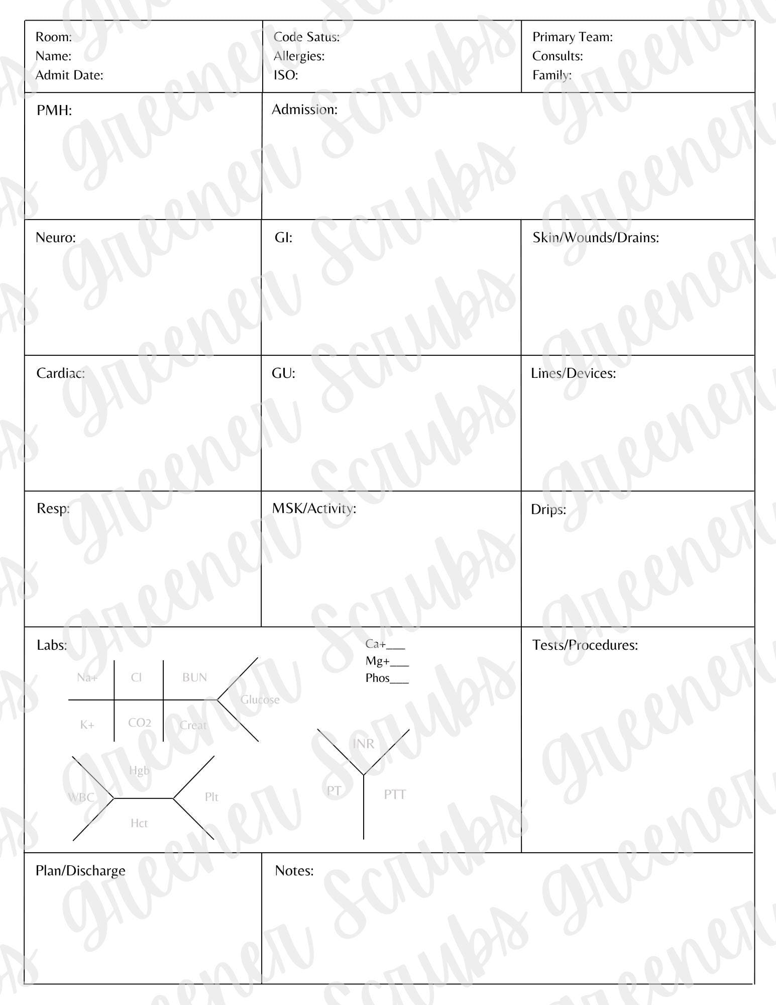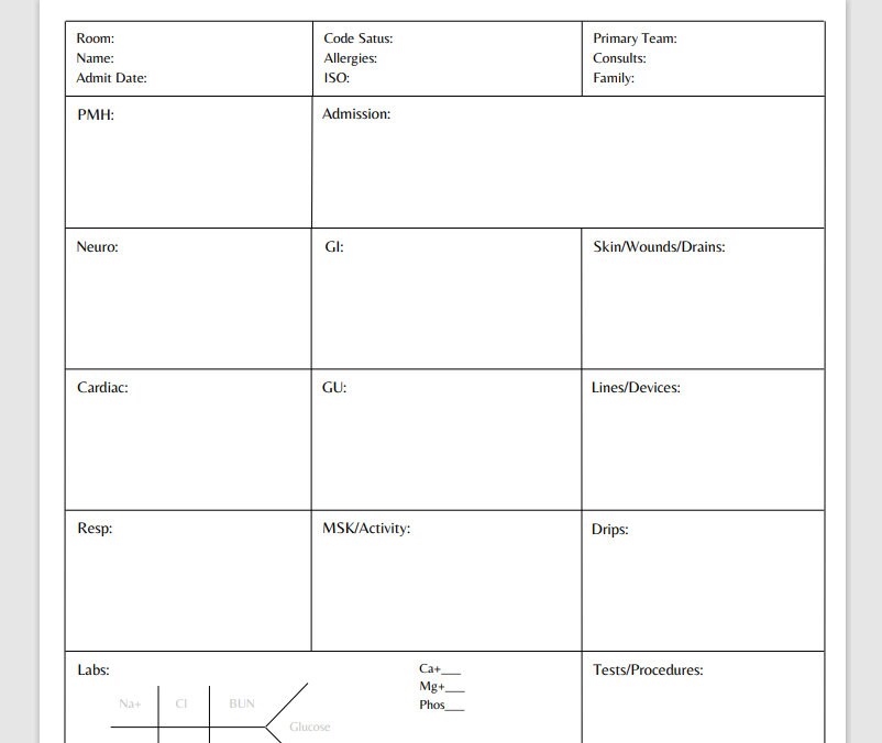 Printable ICU Nursing Report Sheet Portrait Style Etsy