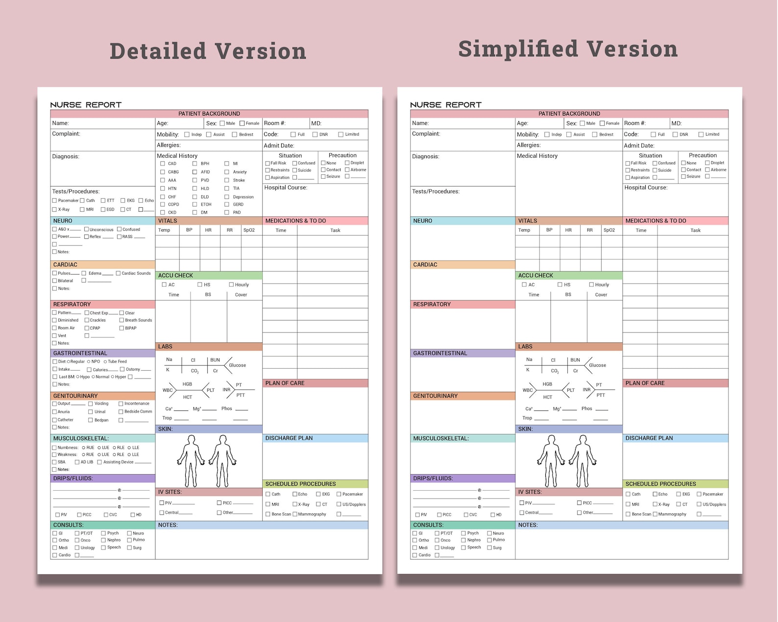 Printable ICU Nurse Report Sheet Template Nursing Report Med Etsy Canada
