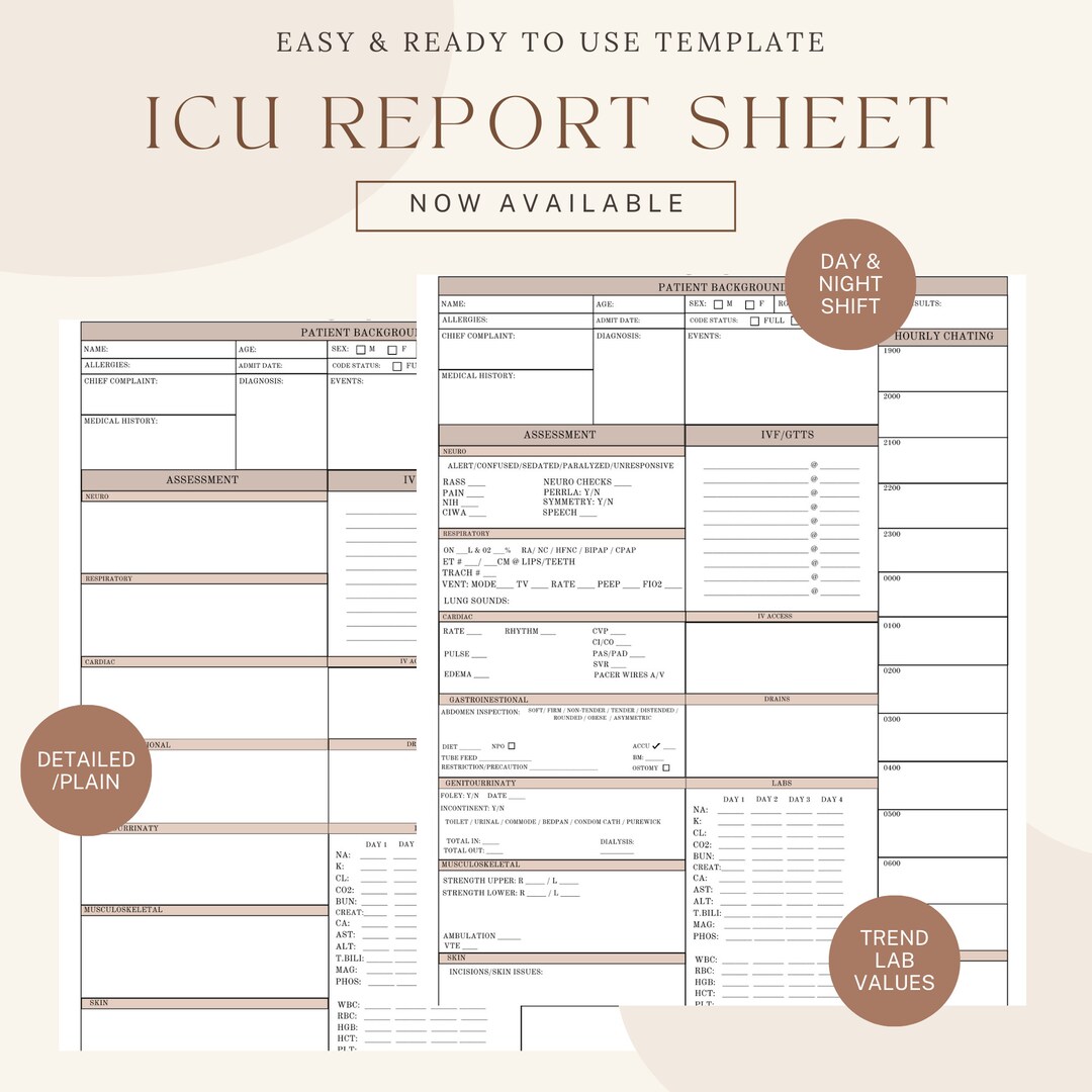 ICU Report Sheet Template Nurse Brain Sheetnurse Report Etsy