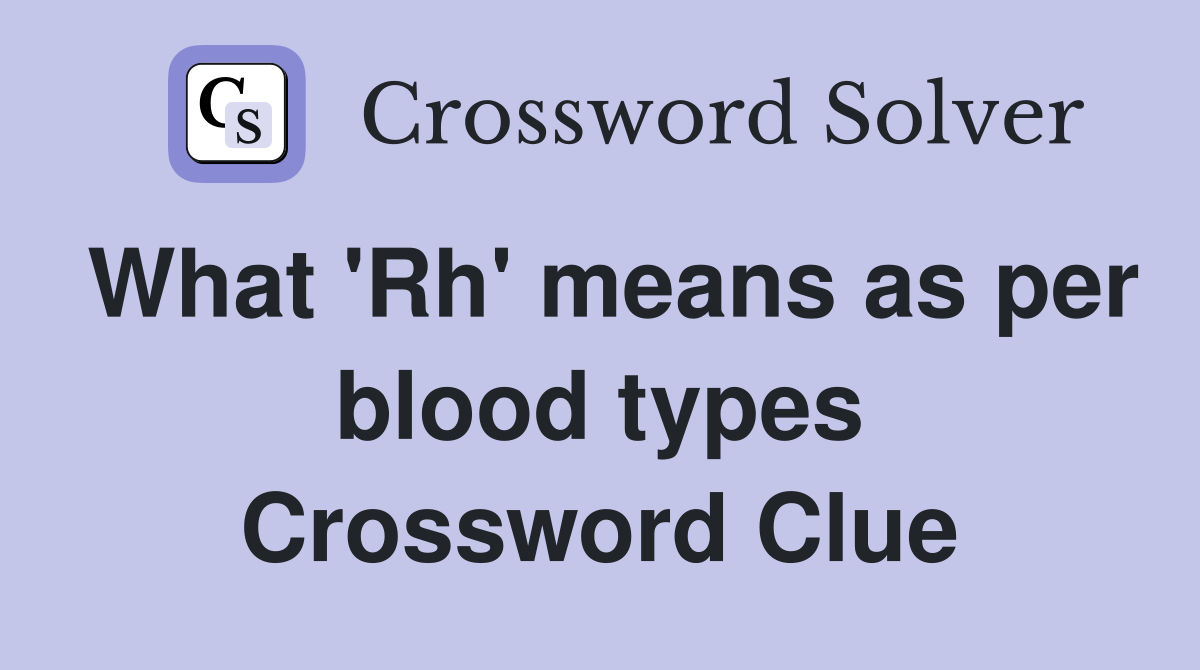 What #39 Rh #39 means as per blood types Crossword Clue Answers Crossword