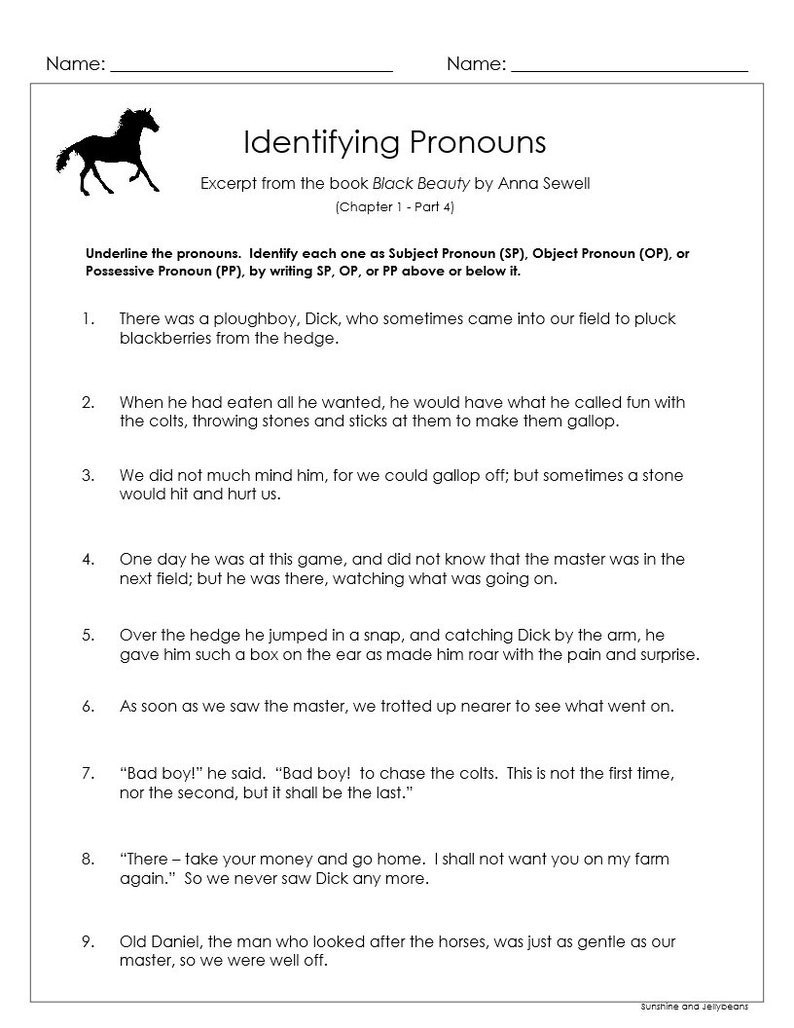 Identifying Pronouns Subject/object/possessive Black Beauty