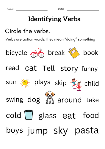 identifying verbs worksheet for grade 1 2 identify action verbs