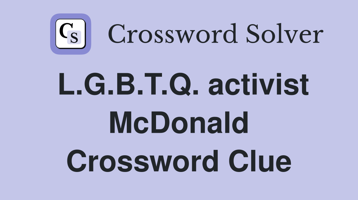 L G B T Q activist McDonald Crossword Clue Answers Crossword Solver