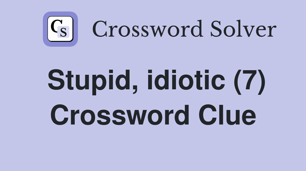 Stupid idiotic (7) Crossword Clue Answers Crossword Solver
