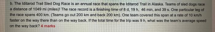 Solved b The Iditarod Trail Sled Dog Race is an annual race Chegg com