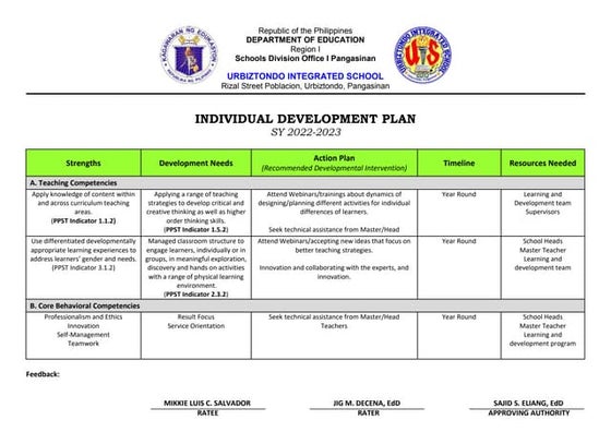 Individual Development Plan IDP Template SY 2022 2023 docx