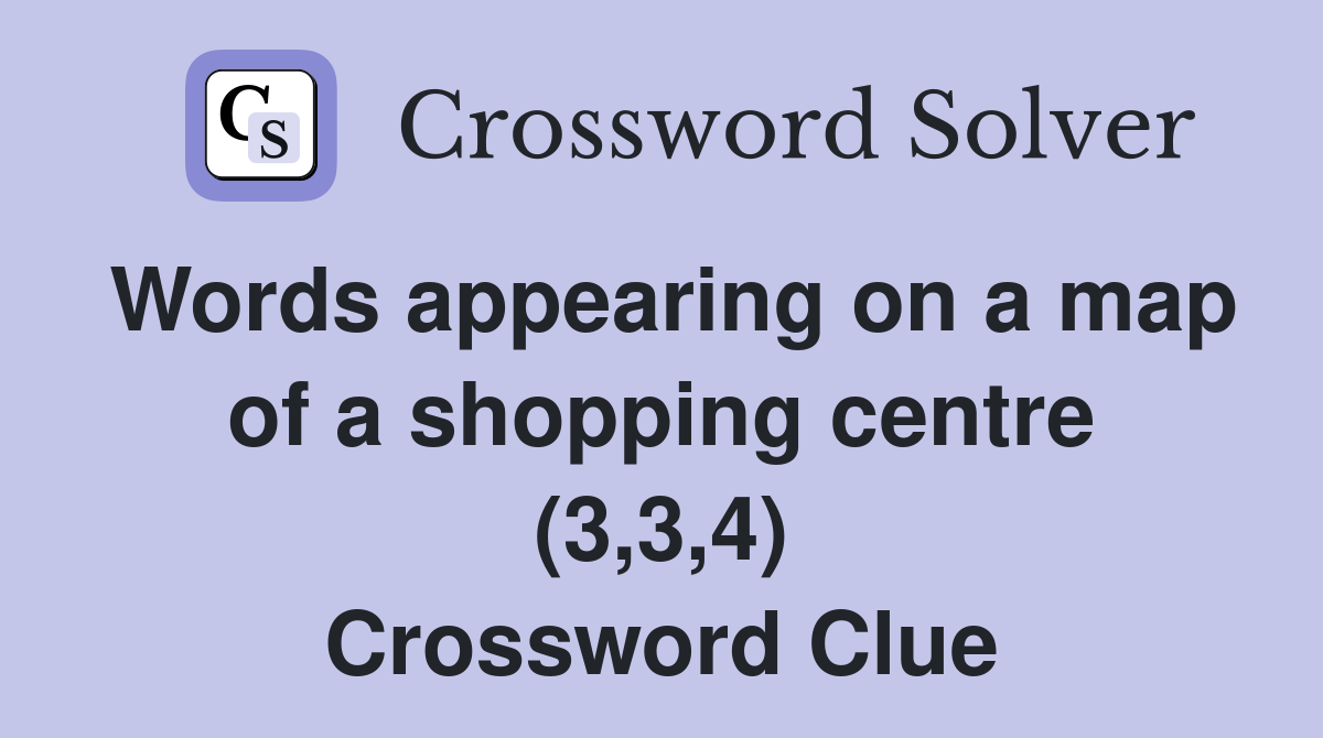 Words appearing on a map of a shopping centre (3 3 4) Crossword Clue