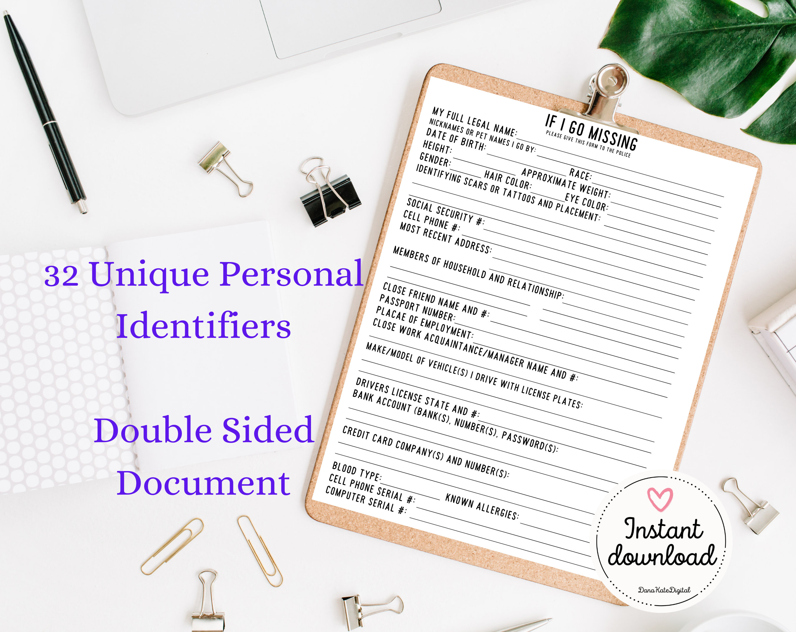 If I Go Missing Folder TEMPLATE for Emergency Preparedness Digital
