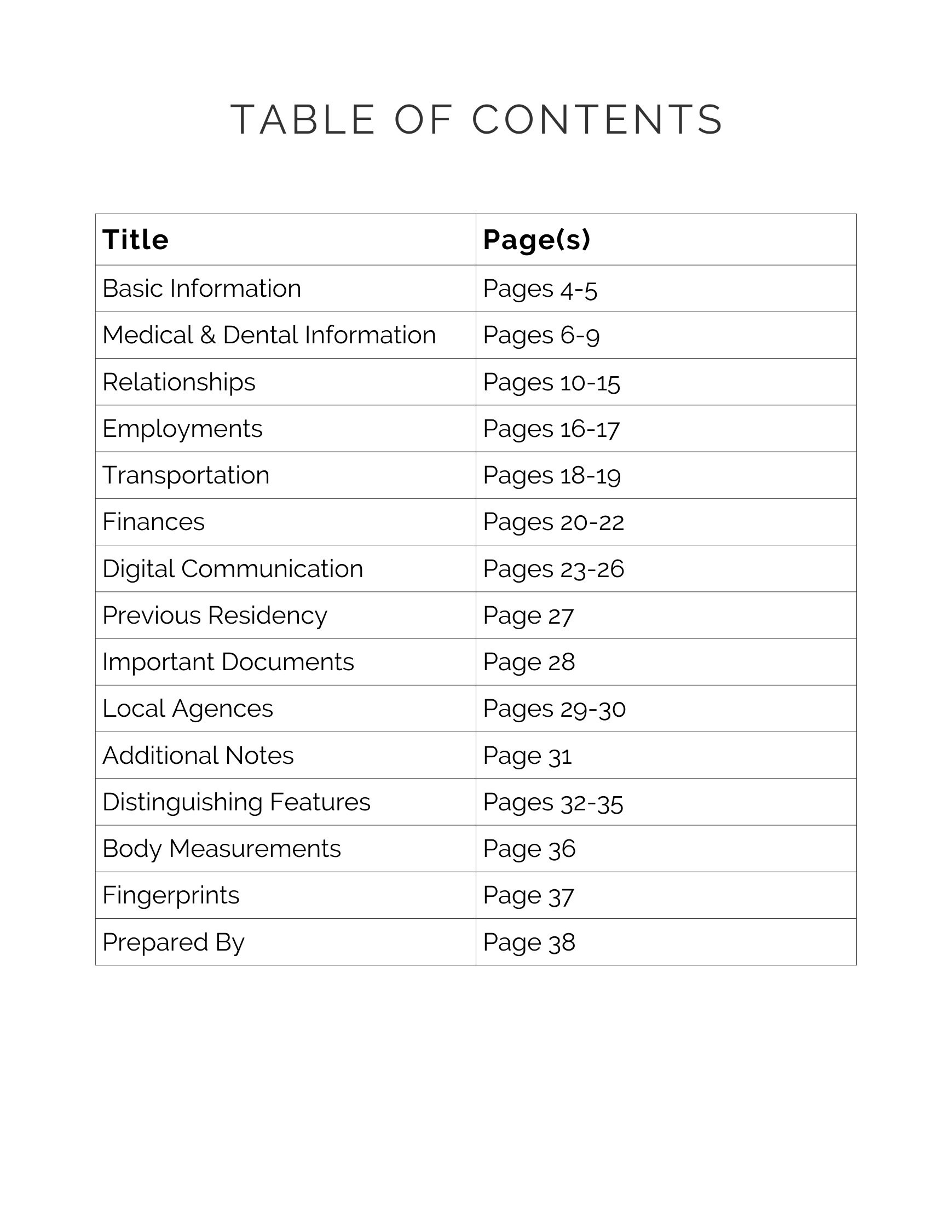 In Case I Go Missing File Template in Case of Emergency Binder