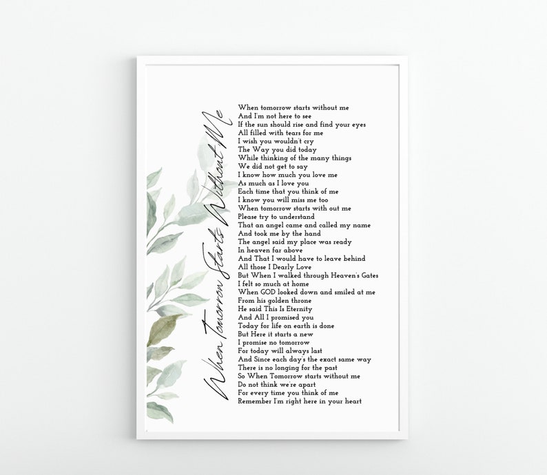 When Tomorrow Starts Without Me Printable Poem Digital Etsy Australia