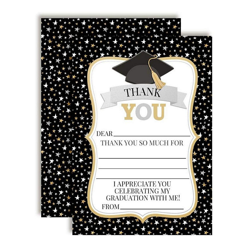 AmandaCreation Classic Graduation Cap With Stars Thank You Notes 50pk