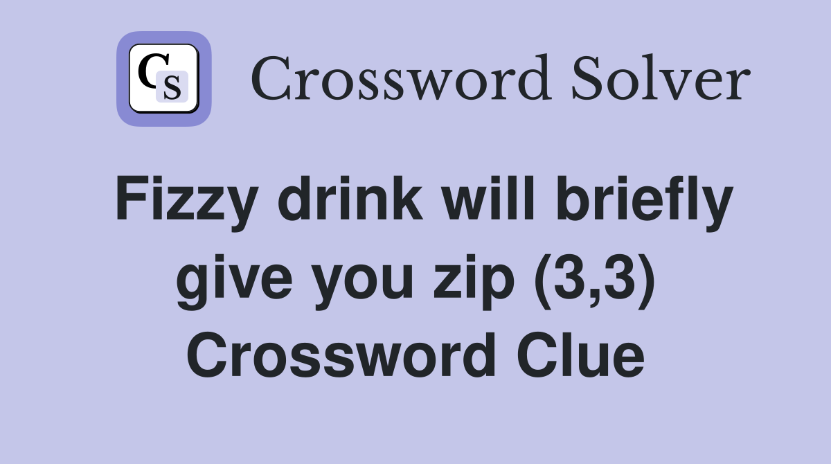 Fizzy drink will briefly give you zip (3 3) Crossword Clue Answers