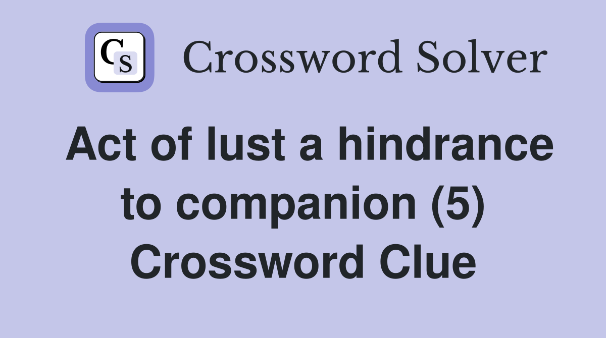 Act of lust a hindrance to companion (5) Crossword Clue Answers