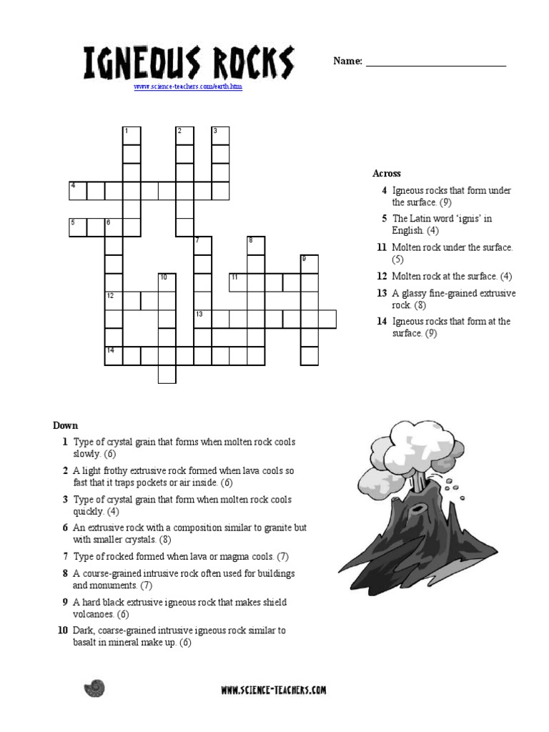 Igneous Rocks Crossword PDF