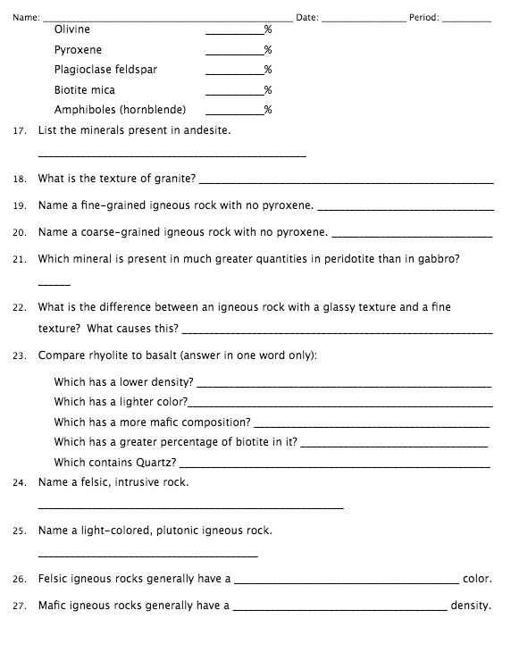 Free igneous rock worksheet Download Free igneous rock worksheet png