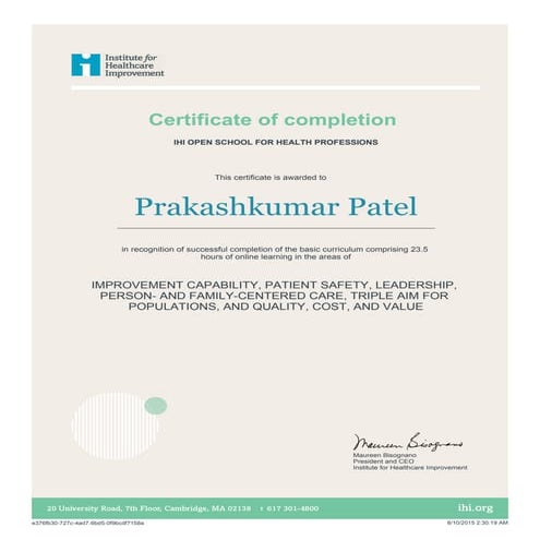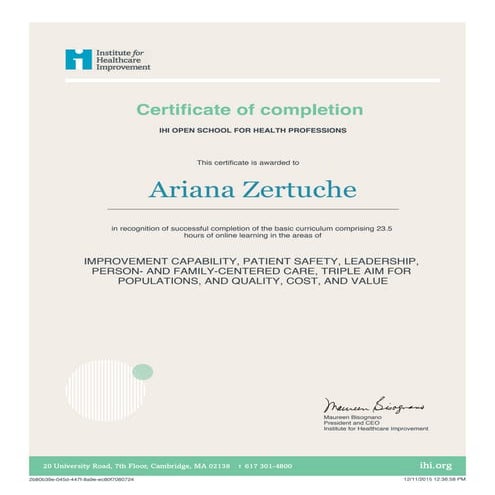 IHI Basic Certificate in Quality pdf Certificate of Completion IHI