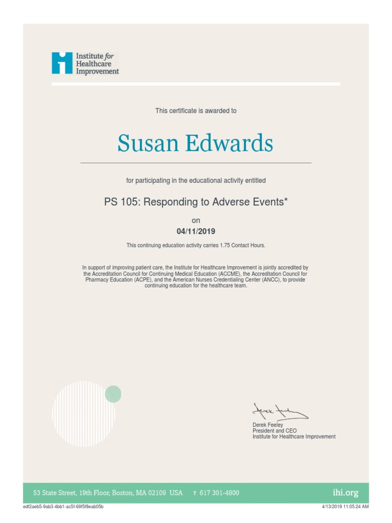 Ihi Certificate Responding To Adverse Events 3 PDF Self Improvement
