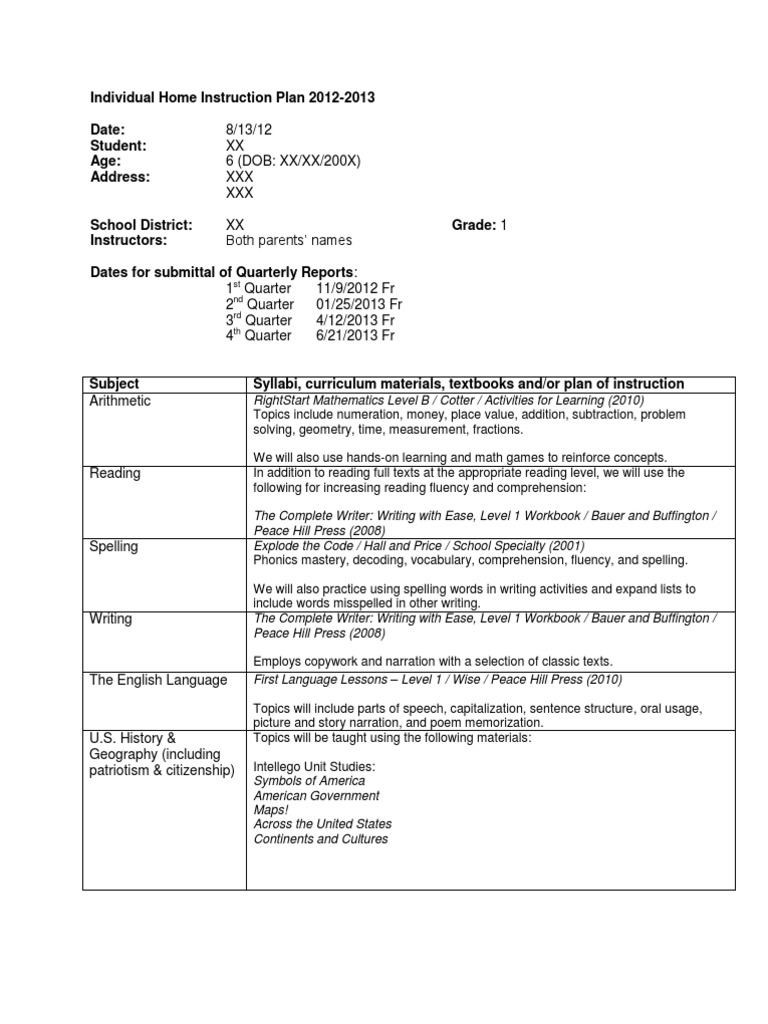 Ihip Homeschool Template Fill Online Printable Fillable Blank
