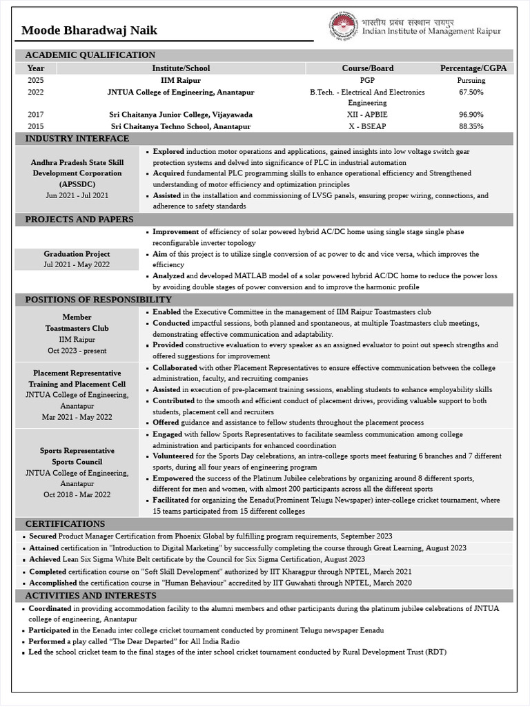 Iit Resume Template