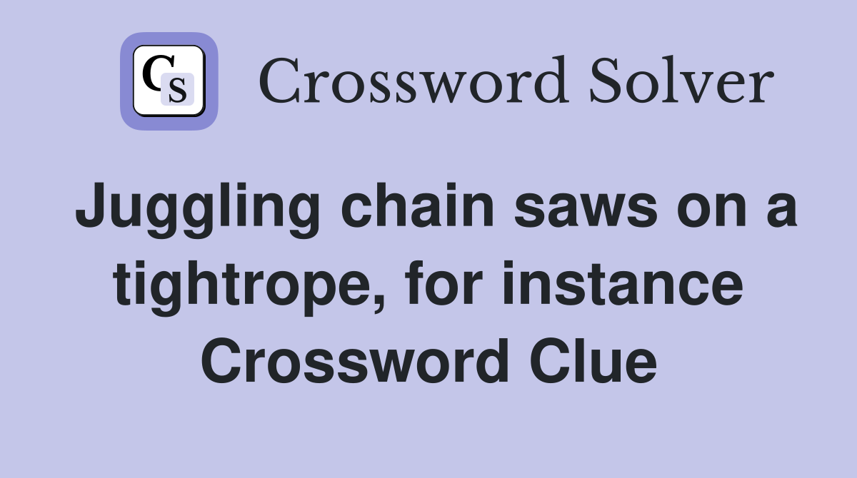 Juggling chain saws on a tightrope for instance Crossword Clue Answers