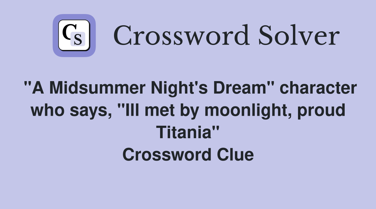 quot A Midsummer Night #39 s Dream quot character who says quot Ill met by moonlight