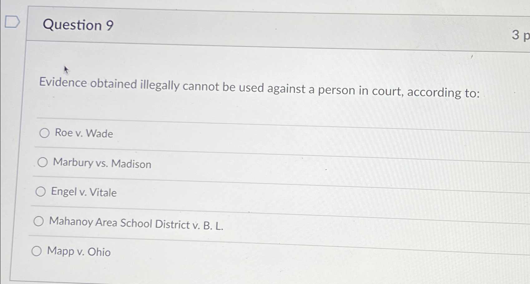 Solved Question 9Evidence obtained illegally cannot be used Chegg com